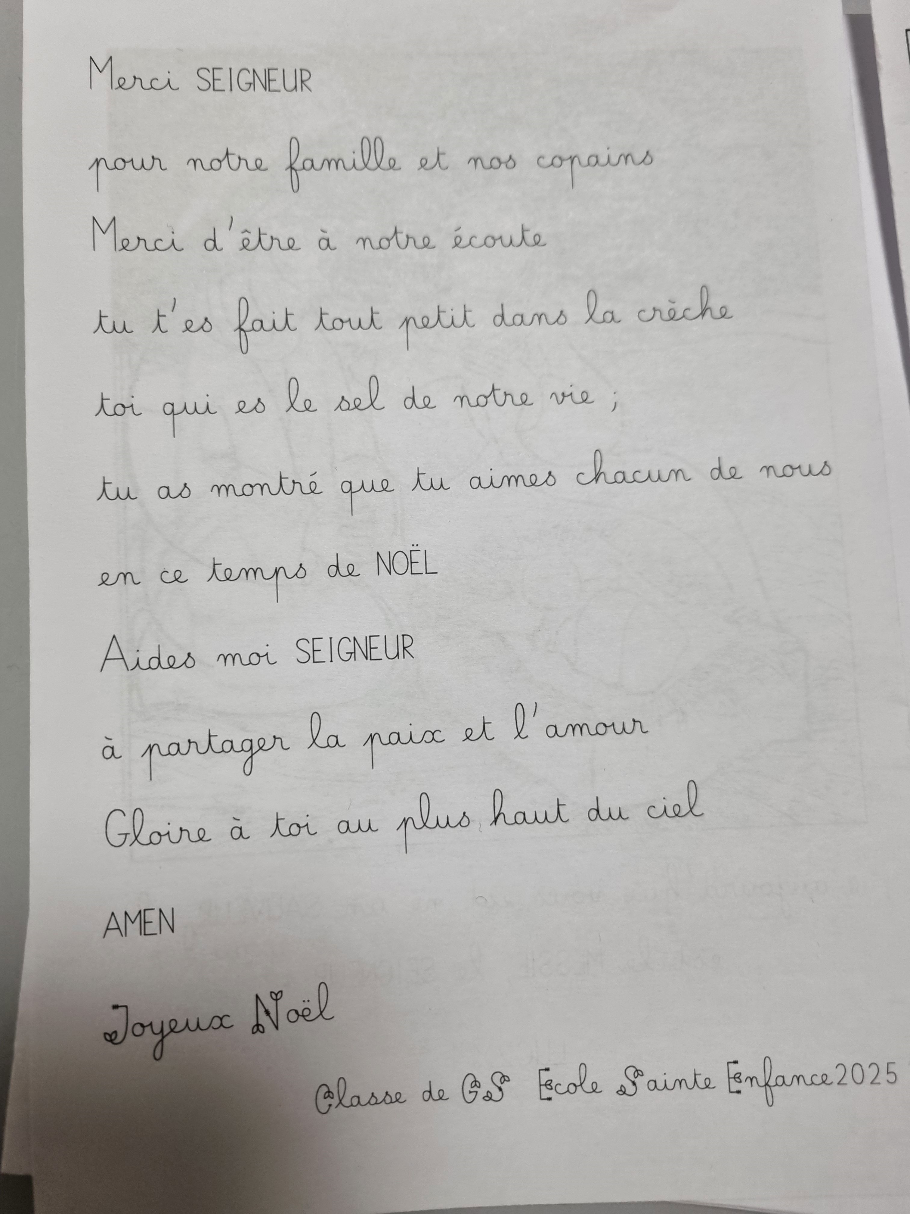 -La classe de GS a participé à un temps d'éveil à la foi pour parler de Jésus et de la grande fête de Noël. Voici la prière et une photo de la très belle crèche réalisée: